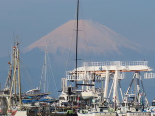 帰りはヨットハーバーの向こうに富士山