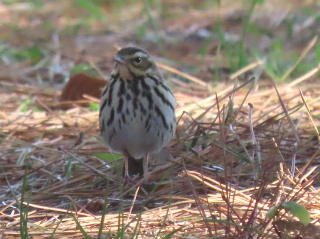 歩き始めて 松林の地面でついばんでるビンズイ発見
