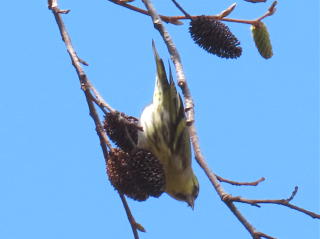 ハンノキの実をついばむ マヒワ♂1♀2